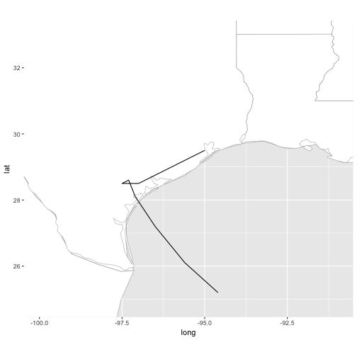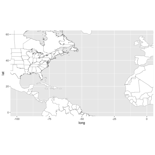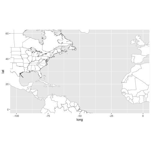 There aren’t many ways we can narrow this down other than using arbitrary longitude values. The observations in the dataset do not have a variable identifying which storm each set of values belongs to. So, I’ll remove the coord_equal