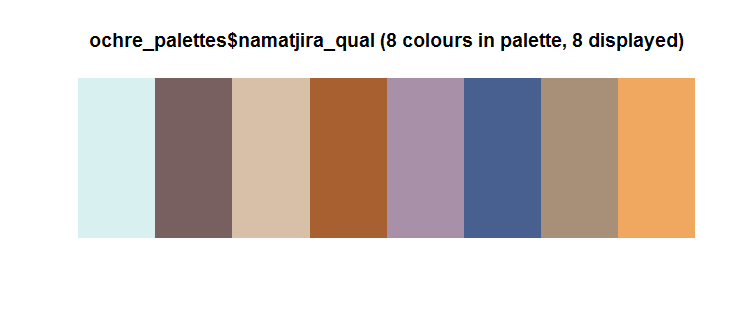 package contains colour palettes influenced by the Australian landscape, iconic Australian artists and images. OchRe is originally the brain-child of Di Cook, who was inspired by Karthik Ram’s wesanderson