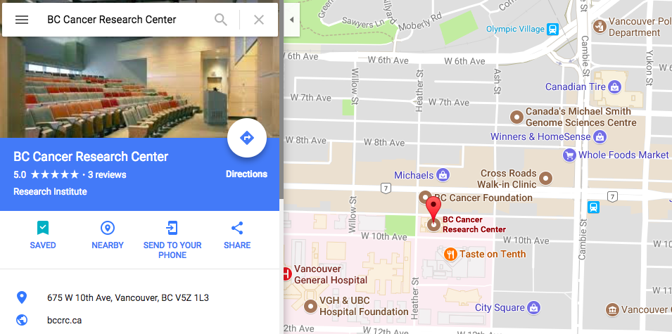 Ground floor lecture theatre, BC Cancer Research Centre, 675 West 10th Avenue.