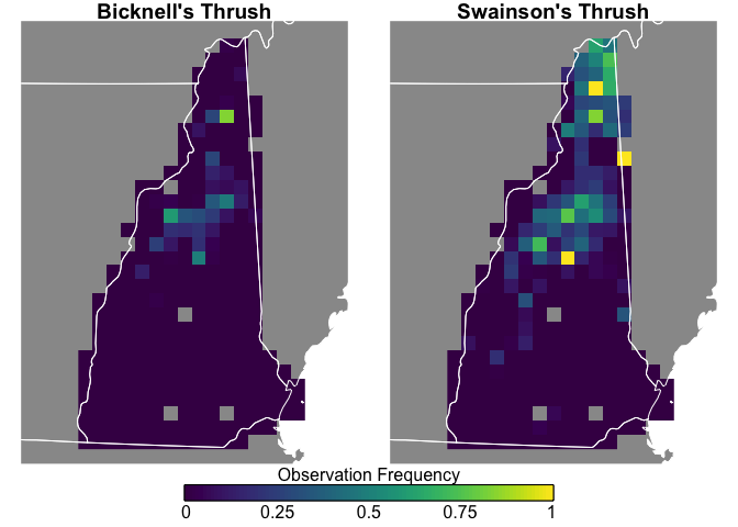 two bird species (Swainson’s and Bicknell’s Thrush) in New Hampshire,