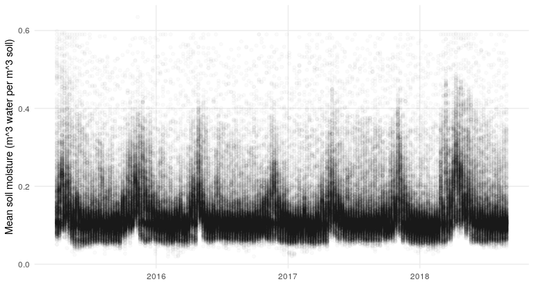 ylab('Mean soil moisture (m^3 water per m^3 soil)')
