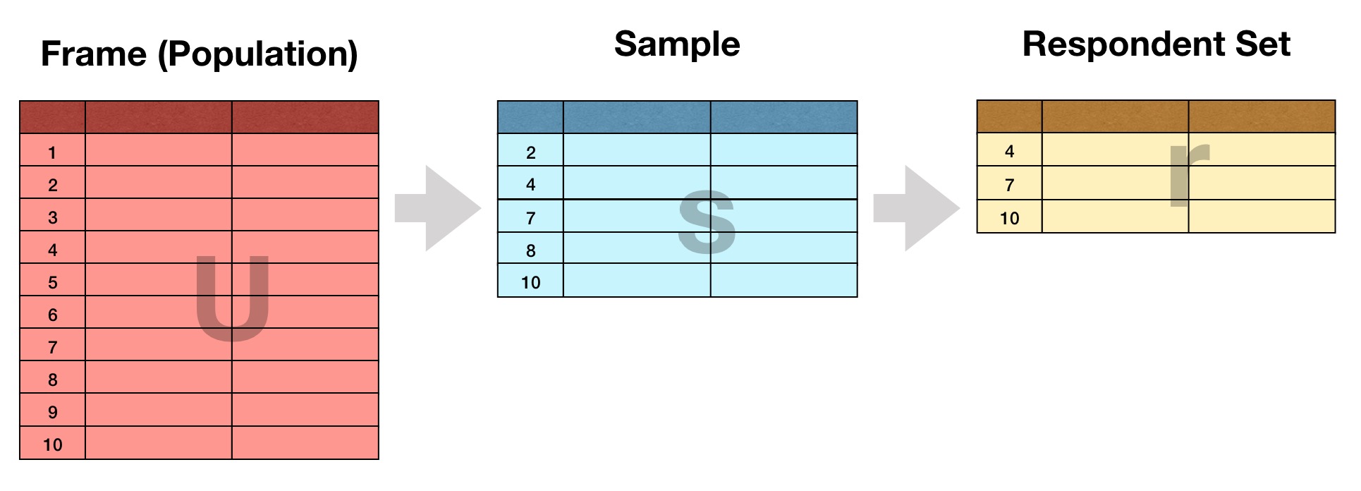 Surveys are ubiquitous in the social sciences, and the best of them are meticulously planned out. Statisticians often decide on a sample size based on a theoretical design, and then proceed to inflate this number to account for “sample losses”. This ensures that the desired sample size is achieved, even in the presence of non-response. Factors that reduce the pool of interviews include participant refusals, inability to contact respondents, deaths, and frame inaccuracies.1 The more non-response, the more a study becomes open to criticism about its veracity.