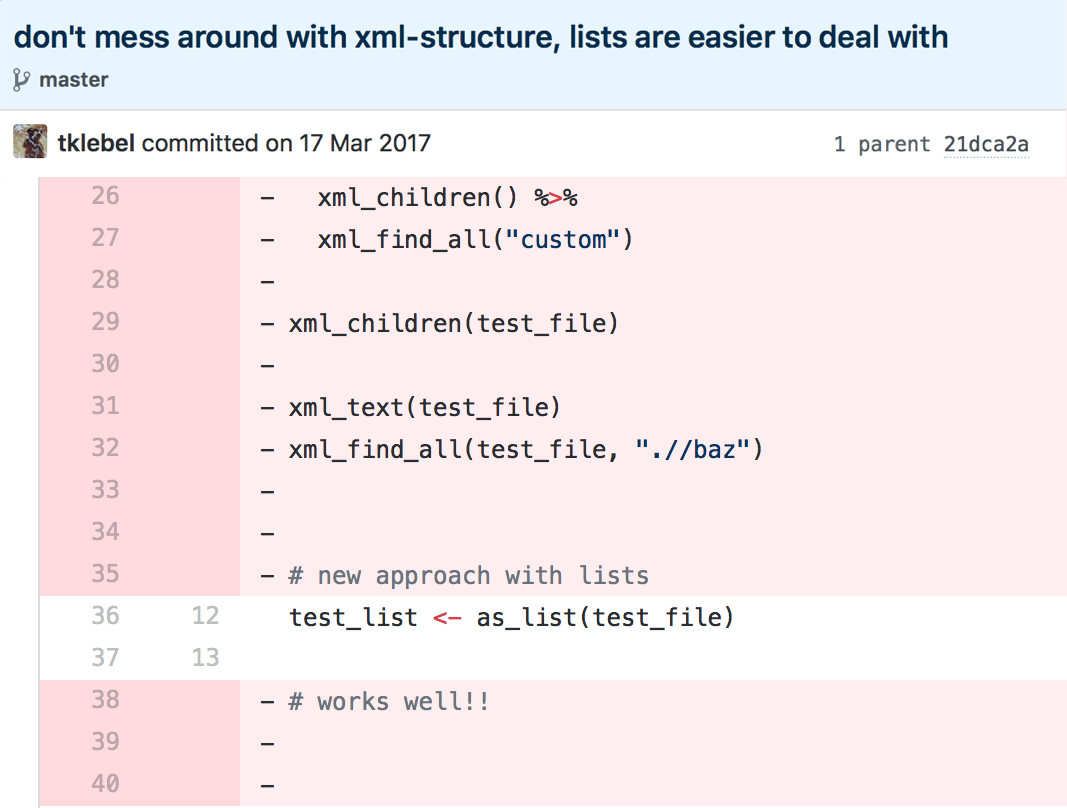 I have learned many things while working on this package. While I acquired certain skills (like writing simple XPATH-queries), I want to highlight a few general things.