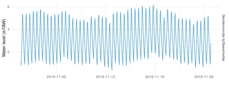(meter above mean sea level) 3. Let’s plot the data for a station (here Dendermonde in November 2016) to have a look: