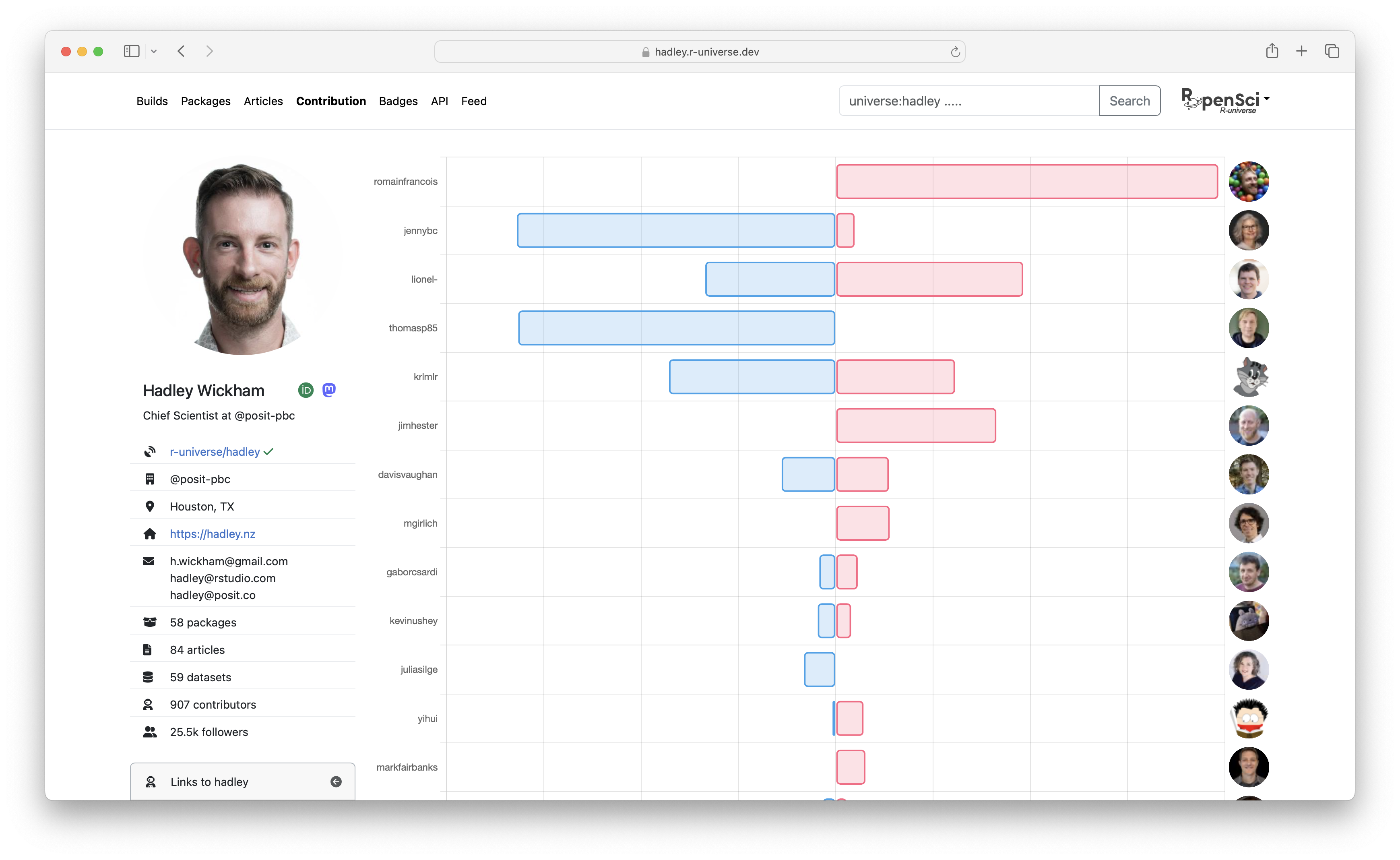 - vignettes with titels, dates, and authorshttps://{owner}.r-universe.dev/contributors